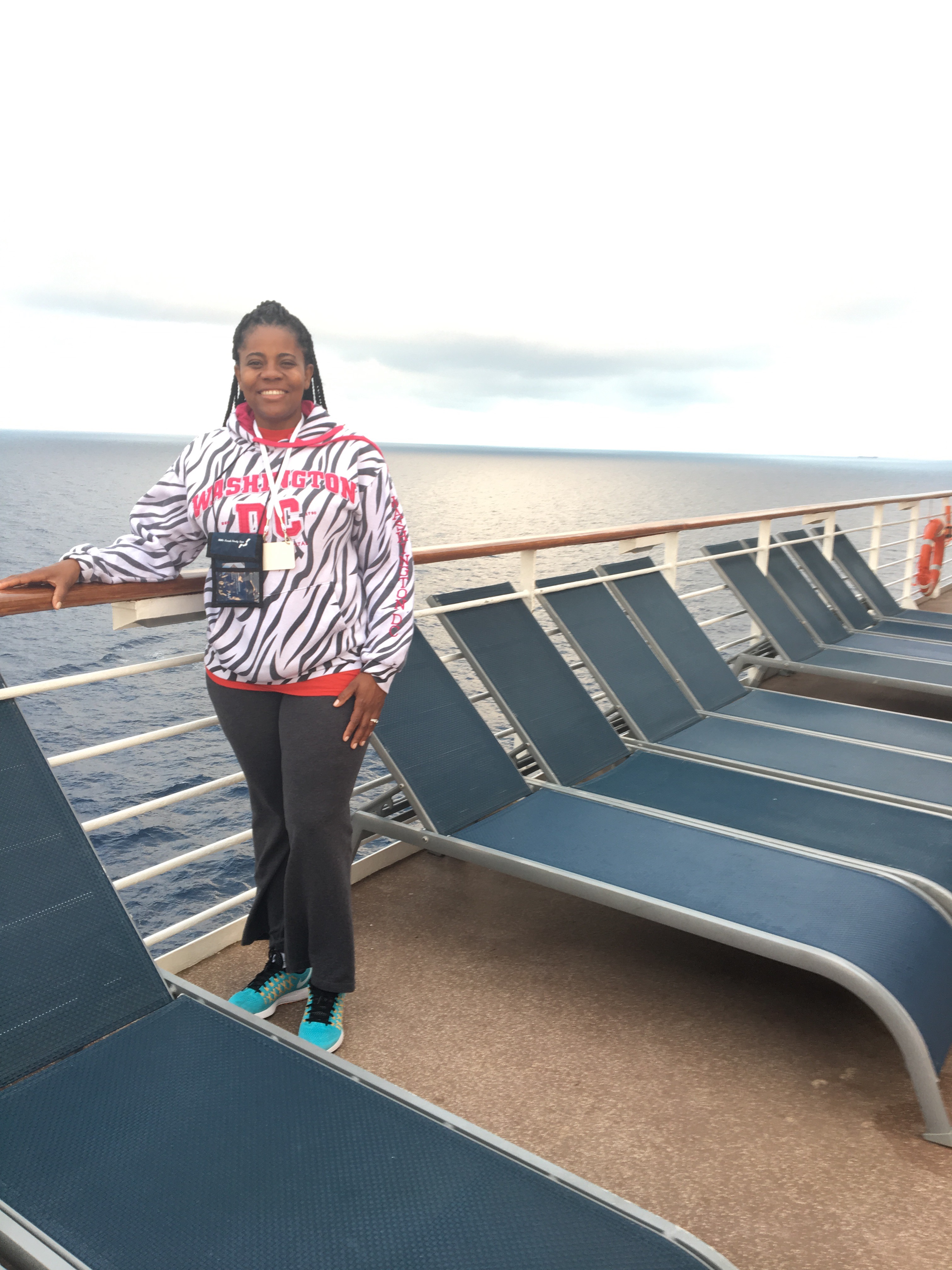 Rutendo and I had a delicious breakfast that included bacon, baked beans, eggs, grilled tomato, and strong coffee. How do they keep their food so fresh and tasty this far from land?! From the restaurant, we went to deck 11 to walk it all off. We walked briskly on the ship’s running/walking track. The ship was moving on, at about 20-22 nautical knots an hour (about 35m/hr). We walked towards our 10,000 steps a day goal.