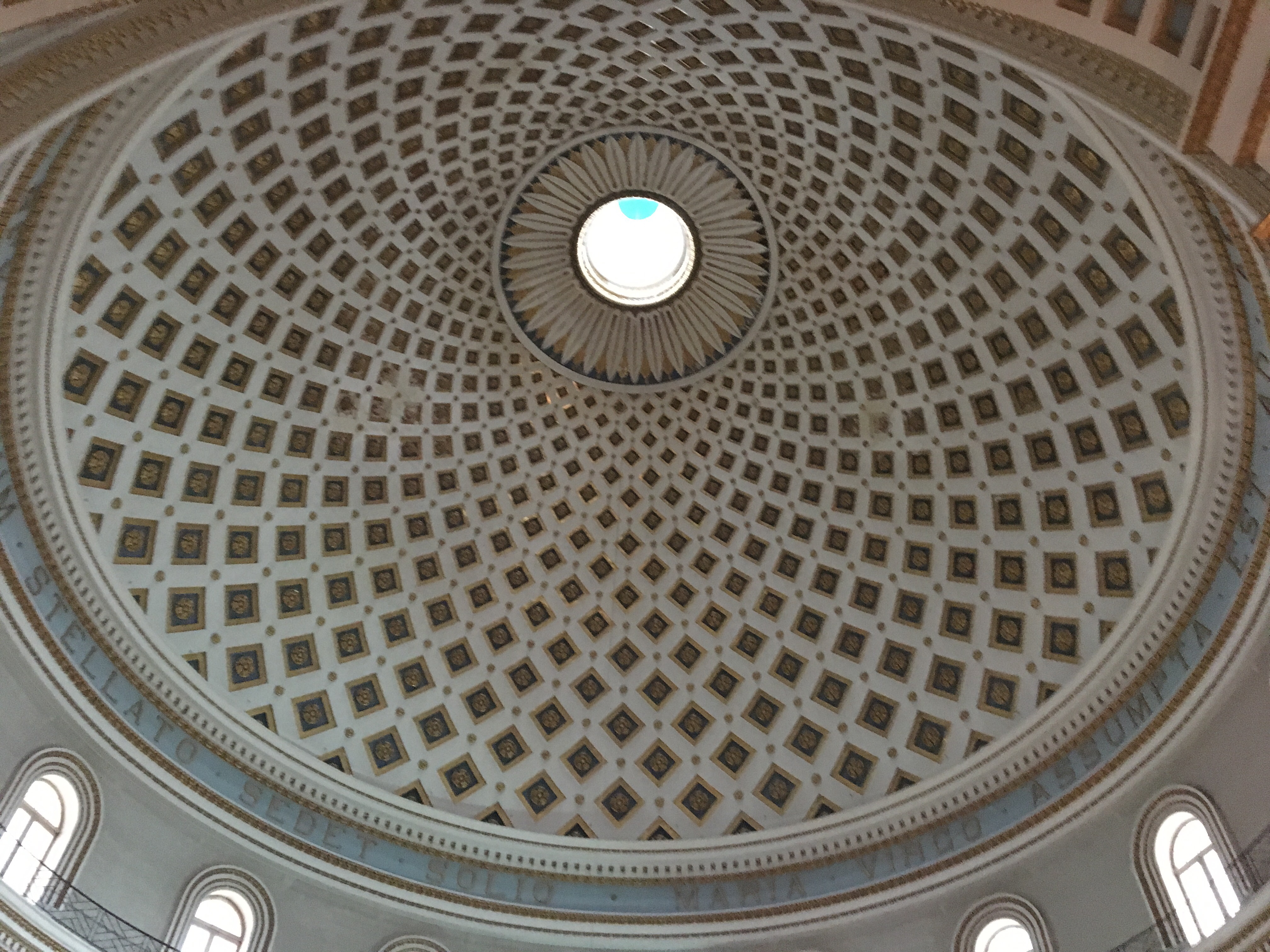 We drove through the center of the island to our second destination- the Mosta Church. This church boasts of having the 3rd largest dome in Europe. The dome was visible from miles away. As we walked up the stairs towards the entrance, it began to drizzle. Throughout our trip, we had enjoyed dry, warm, sunny weather.