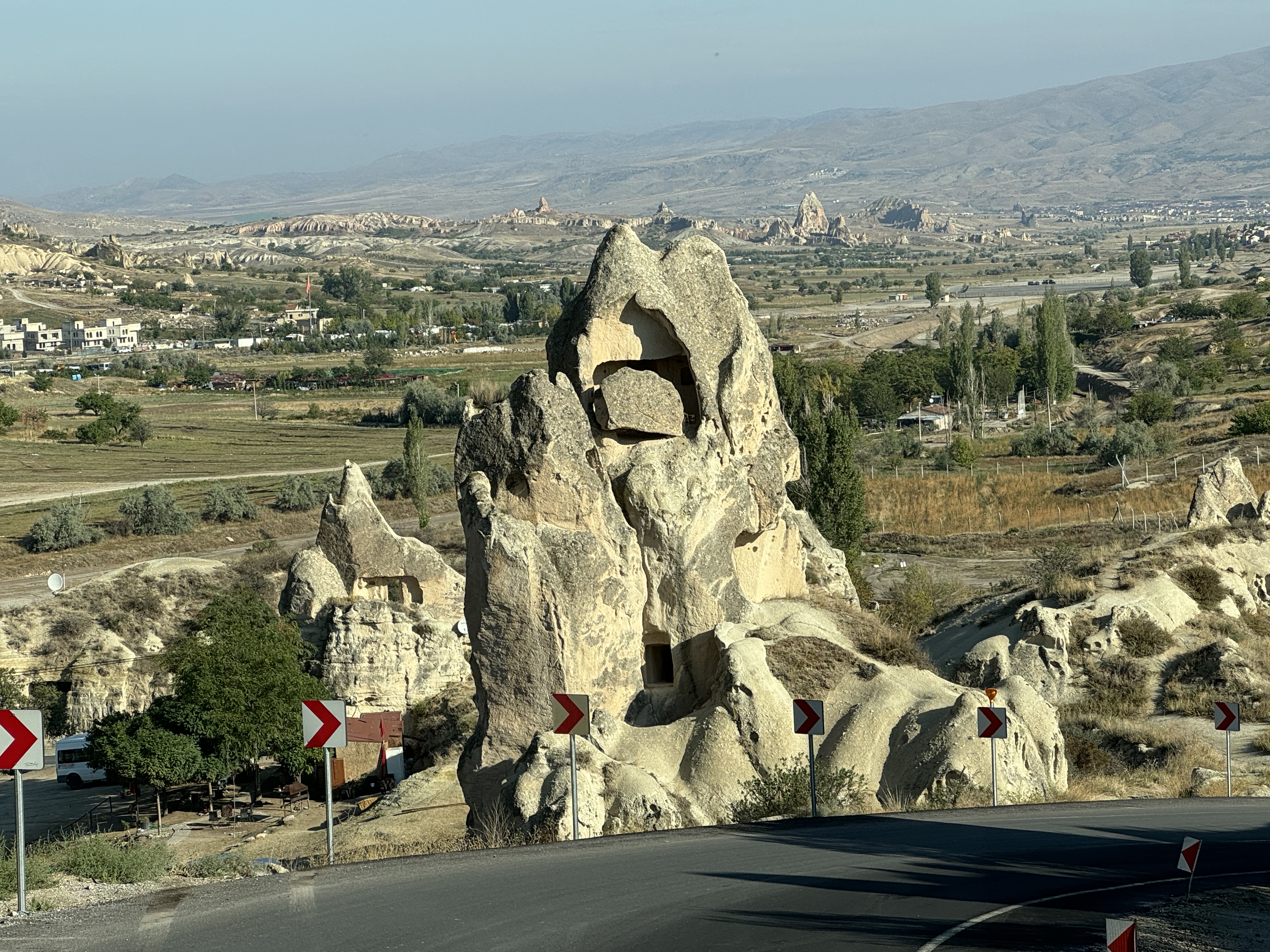 Our journey in Cappadocia began with witnessing the region’s mesmerizing fairy chimneys— alien planet-like rock formations that rise dramatically from the ground, shaped by centuries of erosion. Our first stop was in a quaint small town in the Nevşehir District called Uchiser. Nestled just about 5 miles east of Nevşehir, it stands at the heart of Cappadocia’s rich and breathtaking landscape.