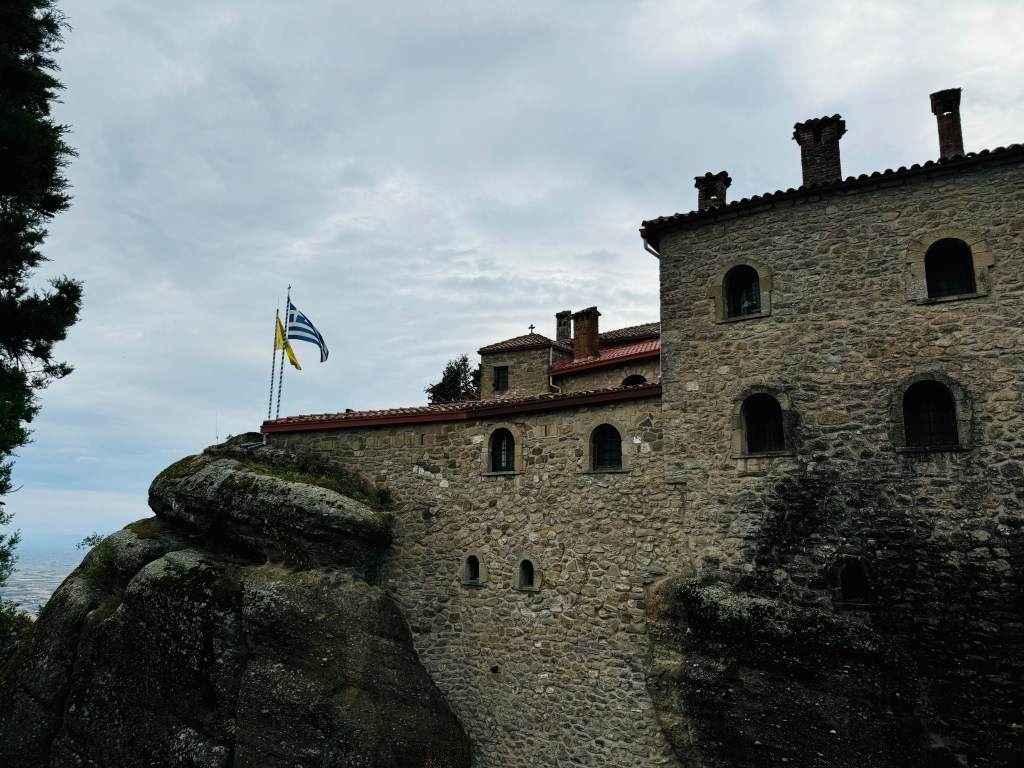 As I stood inside the monastery, I couldn’t help but wonder about the incredible feat of construction. How had the monks and nuns, centuries ago, managed to build such magnificent structures high above the ground, on the very tops of these rock pillars? It is said that it took 22 years to transport every brick, stone, and piece of lumber to the top of these hills—and only 22 days to construct the churches themselves. This astonishing detail adds yet another layer to the awe one feels when visiting Meteora.