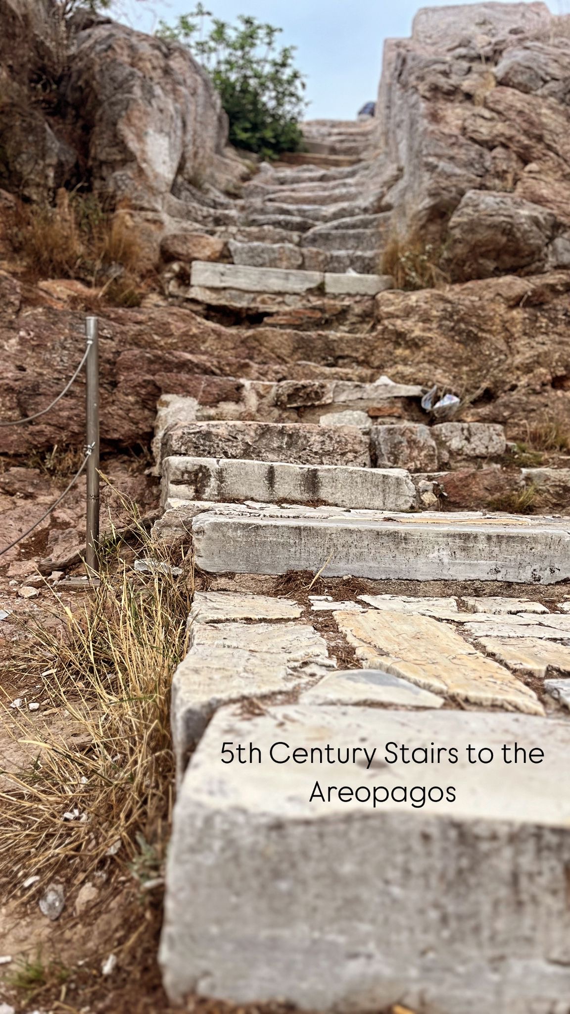 Our first stop was Mars Hill, also known as Areopagus, a place steeped in biblical significance. Walking uphill, we were greeted by an overwhelming array of ancient structures. I found myself completely captivated, struggling to focus as I wanted to take photos of every detail and absorb the magnificence around me.